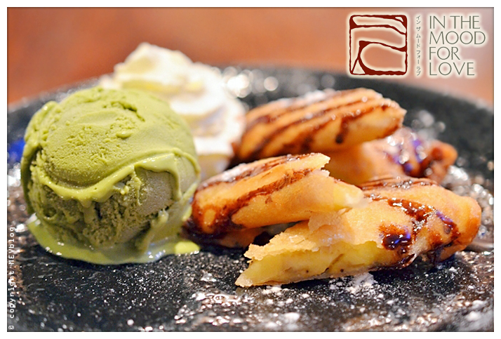 ด้วยความที่มากันแบบสบายๆ ประกอบกับเป็นโอกาสพิเศษ เราจึงอยากนั่งต่ออีกซักพัก เลยสั่งของหวานมาปิดท้าย เป็น กล้วยทอดเสิร์ฟพร้อมไอศครีมชาเขียว สรุปโดยรวมร้านนี้เหมาะกับการทานข้าวแบบเอาบรรยากาศสบายๆ แนวโรแมนติกสำหรับคนพิเศษ ค็อกเทลและโรลต่างๆ อร่อยมาก แต่เมนูซูชิอาจทำได้ไม่ดีเท่าที่ควร สำหรับราคาก็อาจจะสูงไปนิดสำหรับมื้อธรรมดา แต่ถ้ามาในโอกาสพิเศษแล้ว ก็คงไม่ผิดหวังแน่นอน