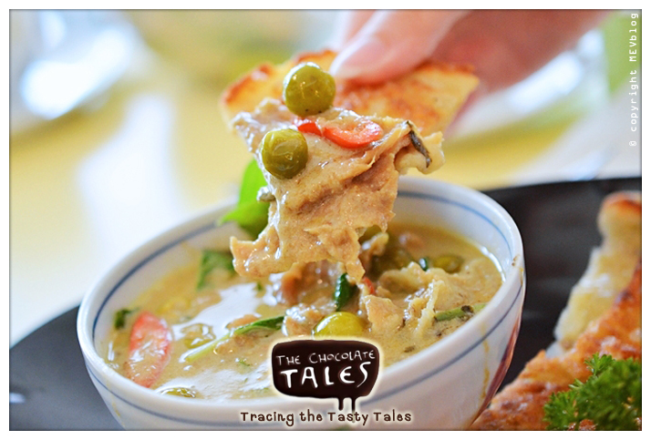 เริ่มจากเมนู ข้าวไก่อบกระเทียมไข่ฝอย (Rice Garlic & Pepper Chicken & Shreded Omelette - 100 บาท) สะโพกไก่อบหมักมาแบบชุ่มๆ โรยหน้าด้วยไข่ฝอยและกระเทียมทอดฝานแผ่นใหญ่ เข้ากันได้ดี ตามด้วย ข้าวผัดมันกุ้งเสวย (Shrimp Paste Fried Rice - 140 บาท) ที่ผัดแบบแห้งๆ ถูกใจได้รสหอมมัน บีบมะนาวลงไปเสริมรสชาติอีกหน่อยเพิ่มความอร่อย แต่สำหรับตัวกุ้งนั้นทำมาสุกเกินไป ทำให้เนื้อกุ้งแห้งติดเปลือกแกะออกยาก ปิดท้ายอาหารคาวด้วย โรตีแกงเขียวหวานเนื้อเซอร์ลอยด์ (130 บาท) ที่บรรดานักชิมต่างยกนิ้วให้ สำหรับเมนูนี้ทางร้านให้เนื้อมาเต็มที่ ทานทุกคำตักเจอเนื้อทุกคำ เนื้อนุ่มอร่อยสมเป็นเซอร์ลอยด์ แถมมะเขือเปราะและมะเขือพวงที่ใส่มาก็นิ่มถูกใจไม่ขม คนที่ปกติไม่ทานมะเขือพวกนี้หากได้ลองอาจจะติดใจได้เลย เข้ากับแกงเขียวหวานที่เผ็ดน้อยๆ รสชาติกลมกล่อม สำหรับตัวโรตี ทอดออกมาเป็นแบบไม่กรอบ อาจจะใช้วิธีทอดในกระทะแบนไม่ใช่ deep fry แต่ถึงแม้ว่าแป้งจะไม่กรอบ แต่กลิ่นหอมและความนุ่มหนึบของตัวแป้ง ตักแกงใส่แล้วทานยิ่งเข้ากัน เป็นเมนูง่ายๆ ทานสบายๆ ไม่หนักไม่เบาจนเกินไป